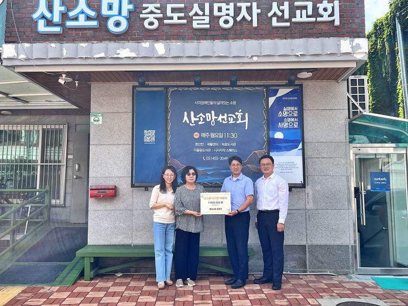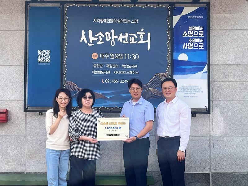 작년 12월, 성북구 안암동의 영암교회(담임 : 유상진 목사) 중등부에서 교회 밖의 어려운 이웃을 위해 바자회를 진행했습니다. 그리고 그 바자회의 수익금을 산소망 선교회로 후원해주셨습니다.